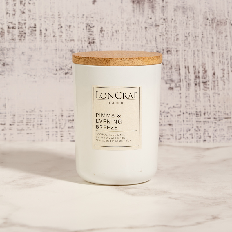 Introducing “Pimms and Evening Breeze” – a captivating soy candle that transports you to a serene evening in a lush garden. Infused with the refreshing essence of rooibos tea, soothing aloe, and invigorating mint, this candle offers a delightful blend of earthy, herbal, and minty aromas.